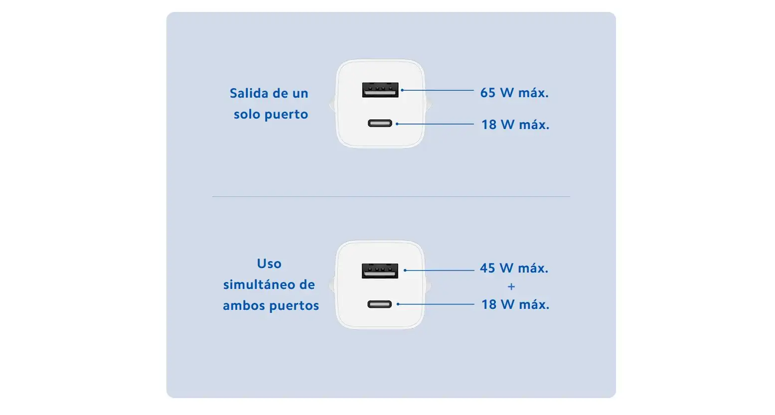 - Capacidad de salida adaptable a 10W/18W/24W/45W/65W