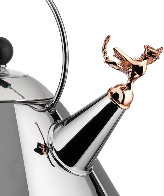 Diseñado por Michael Graves. Este hervidor es internacionalmente reconocido como uno de los iconos del diseño contemporáneo gracias a su mezcla de lenguaje pop y posmoderno. Para celebrar los treinta años del hervidor, Graves ha rediseñado el silbato transformando el pajarito en una