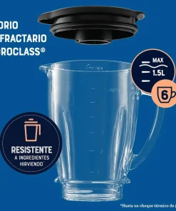 - Sistema de acople de metálico 10 veces más fuerte entre la cuchilla y el eje de la base que prolonga la vida de la licuadora.