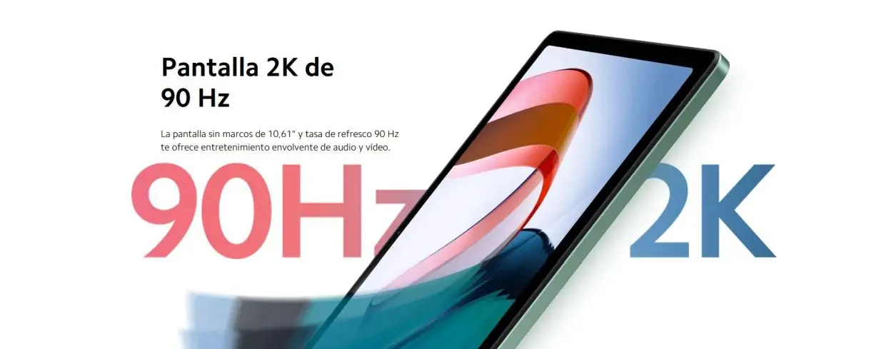 En el primer apartado nos encontramos con una pantalla con una resolución 2K de 2000 x 1200 píxeles. Esta nueva Xiaomi Redmi pad dispone de una pantalla sin apenas marcos de 10,61 pulgadas y con una tasa de refresco envidiable de 90 hercios. El entretenimiento está asegurado con esta pantalla de más de mil millones de colores con 400 nits de brillo. Otra de las cosas que nos llama la atención de esta nueva Redmi pad es la pantalla de luz azul reducida certificada por tuv rheinlan que nos protegerá de la vista en todo momento. Esta nueva tablet es la primera del mundo en recibir la certificación de SGS para la fatiga visual baja.
